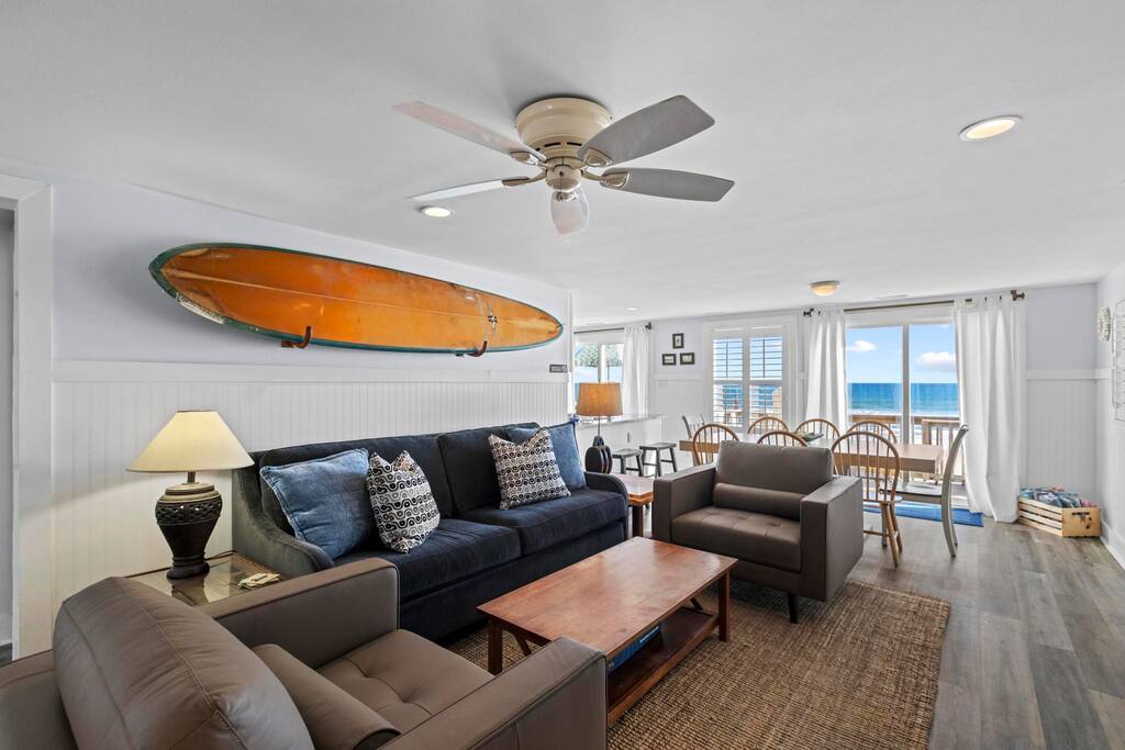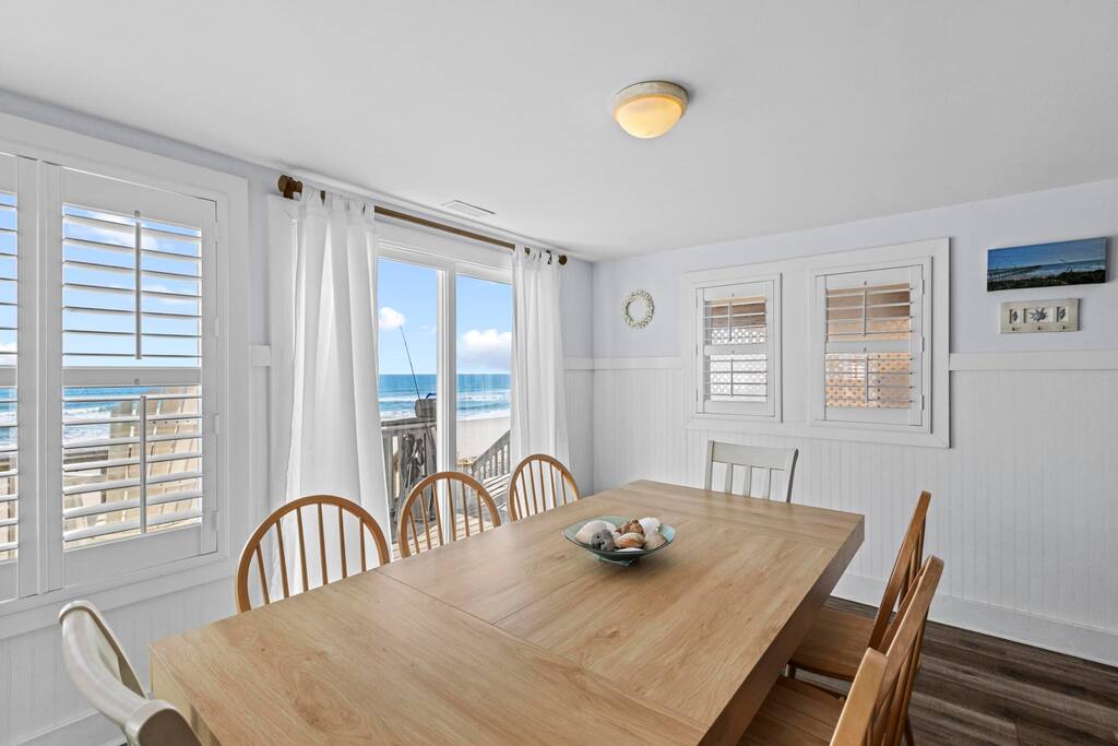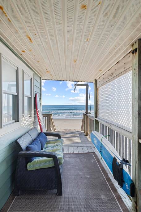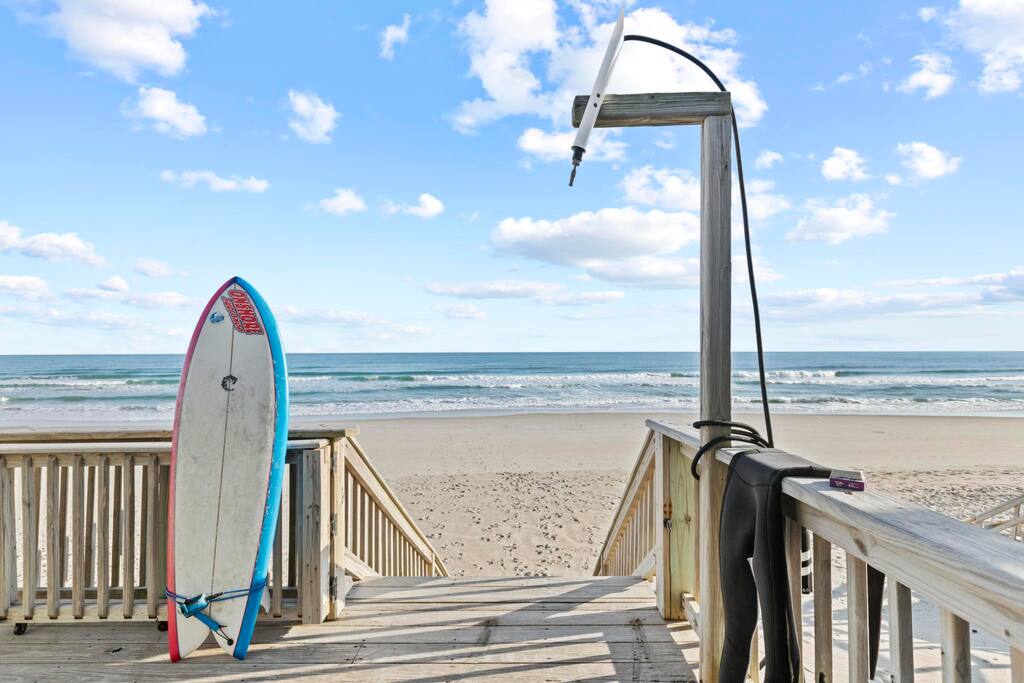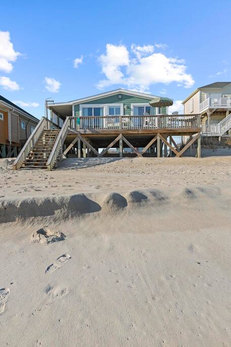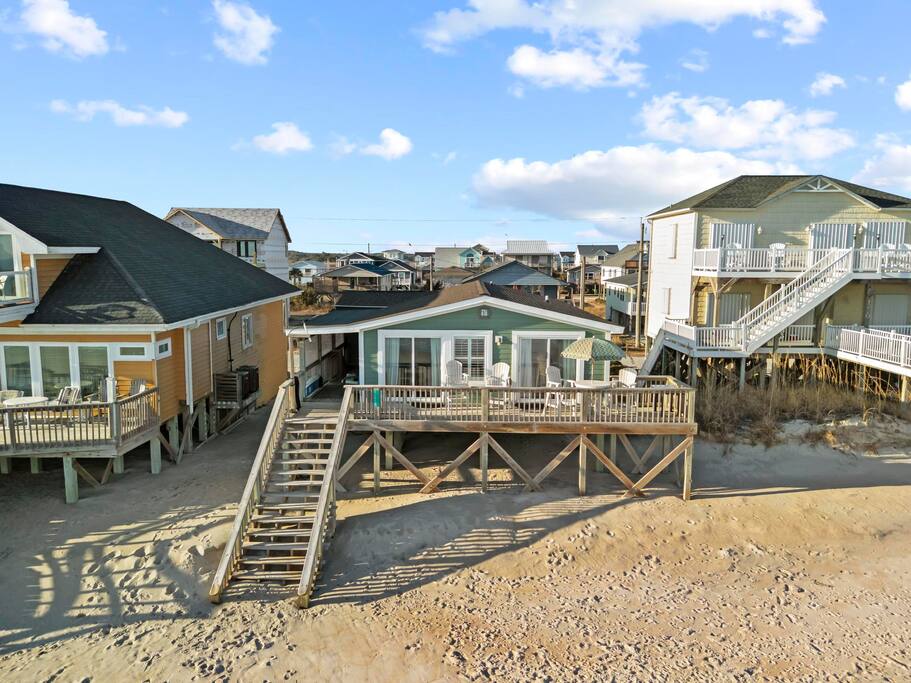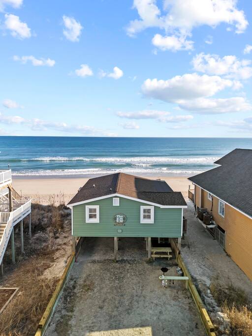 Oceanfront Living Take in stunning ocean views from inside the home or the spacious deck, just steps from the beach — keep an eye out for dolphins playing in the waves right out front! Exclusive Guest Perk: Surf More, Save More We’ve teamed up with Onshore Surf Shop to make your beach stay even better! As our guest, you’ll receive 15% off all surf lessons and all-around rentals for the entire duration of your stay! Just mention you’re staying with us and enjoy the savings while making the most of your time at the beach! Rooms & Spaces • Primary Bedroom: Queen bed • Second Bedroom: Two full beds • Third Bedroom: Queen bed • Bathrooms: Two full baths Home Essentials included in your stay: • Bed linens for all bedrooms • Bath towels & beach towels • Shampoo, conditioner & body wash • Hand soap & toilet paper • Dish soap, dishwasher detergent & paper towels • Laundry detergent for the washer & dryer Kitchen - Fully stocked with pots, pans, utensils, dinnerware, spices, Keurig & drip coffee maker, toaster, microwave, and everything needed to prepare meals at home! Entertainment & Comfort • Smart TVs throughout the home • Cozy living room area with plenty of seating • Wi-Fi and reliable internet throughout the home Beach Gear Included We provide everything you need for a full day on the sand: • Beach chairs • Umbrella • Boogie boards • (1) Foam Top Surfboard • Sand toys • Beach towels Outdoor Amenities Make the most of your time outside with thoughtfully designed outdoor spaces for relaxing, grilling, and beach days! • Outdoor grill with grilling utensils, charcoal, and lighter fluid provided • Picnic table located in the covered carport area next to grill, perfect for outdoor meals! • The upper porch is fully gated on both sides, allowing you to easily close the gates and create a secure outdoor space for kids and pets, with direct access to both the beach and the covered carport! We’re happy to welcome your furry family members! • Dogs allowed with owner approval • $100 per pup Please note: To keep the home comfortable for all guests, pups are not allowed on beds or furniture.